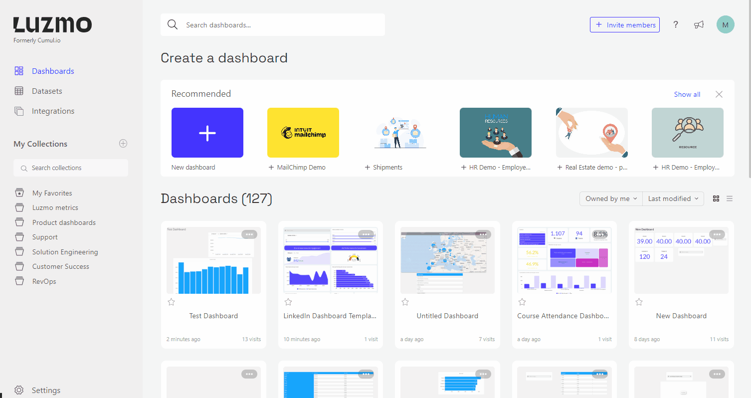 If you've previously disabled the display of dashboard templates but wish to bring them back, Luzmo provides an easy way to re-enable this feature. Follow the steps below to include dashboard templates in your my dashboard page: