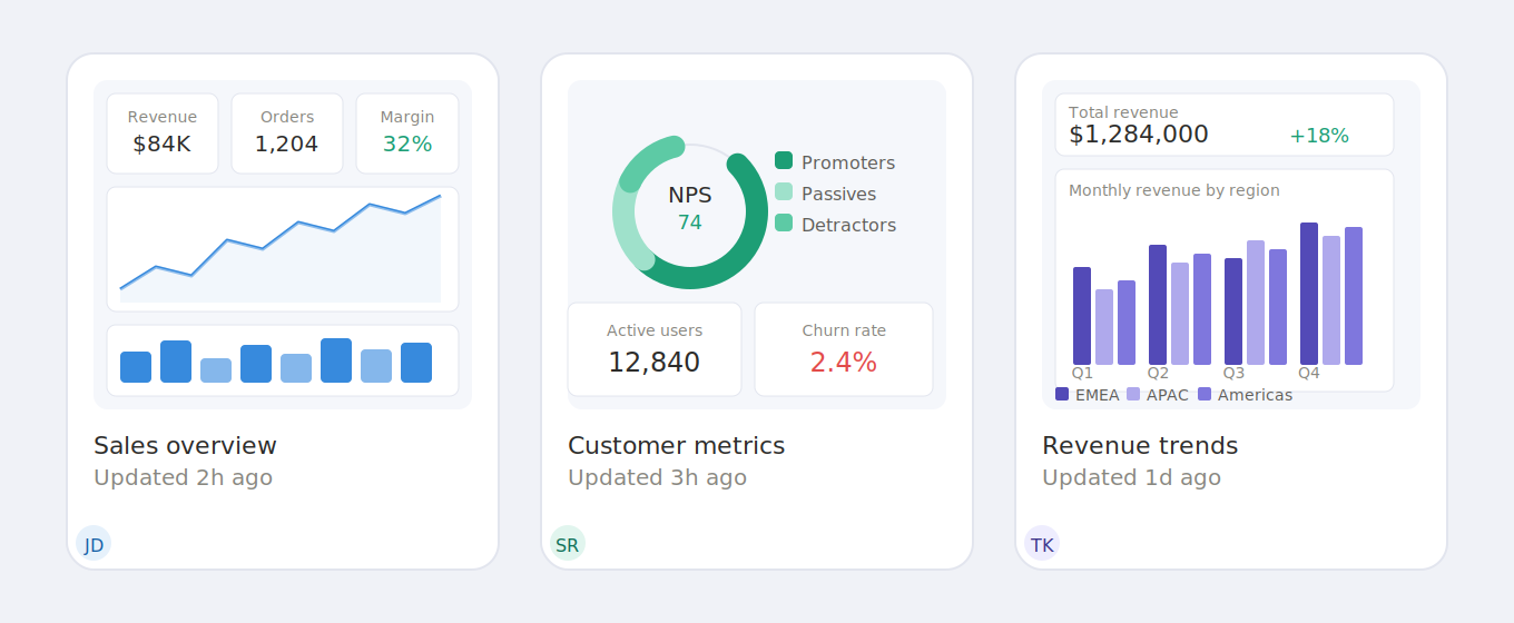 Example of a potential app, where tumbnails are displayed above the dashboard names and the "last updated" times.