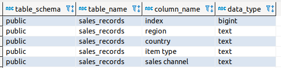SELECT table_schema, table_name, column_name, data_type