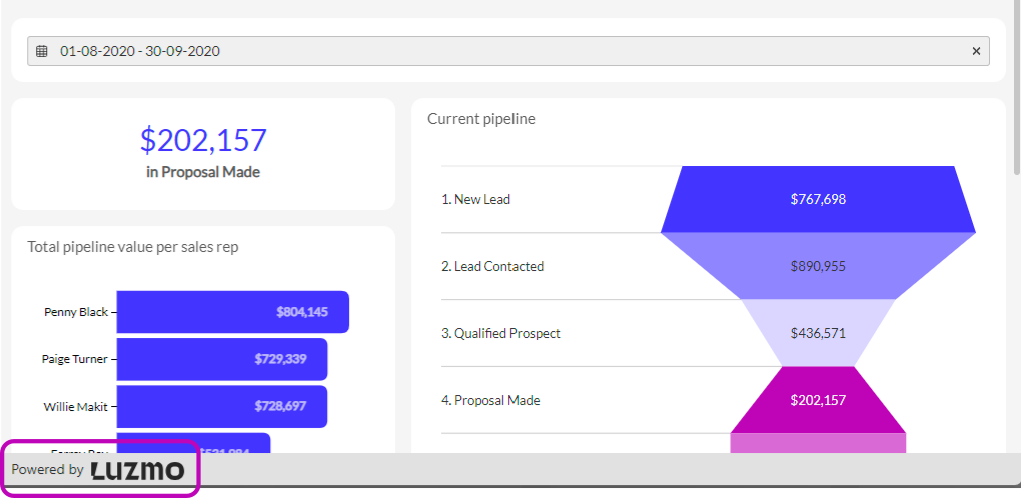 No 'Powered by Luzmo' in the dashboard bottom banner.