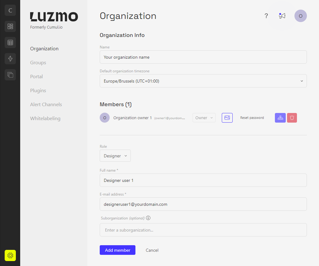 Once you added a user to your organization in your Organization overview page, they will receive an invitation email to confirm their account and set up a password, after which they can successfully log into the Luzmo app.