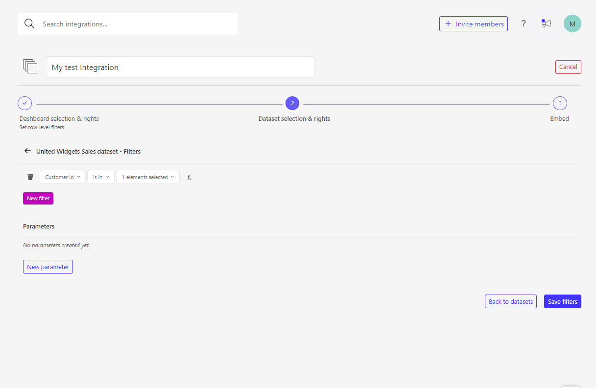 The gif below shows you how you can easily apply a static filter when associating the dataset with your integration!